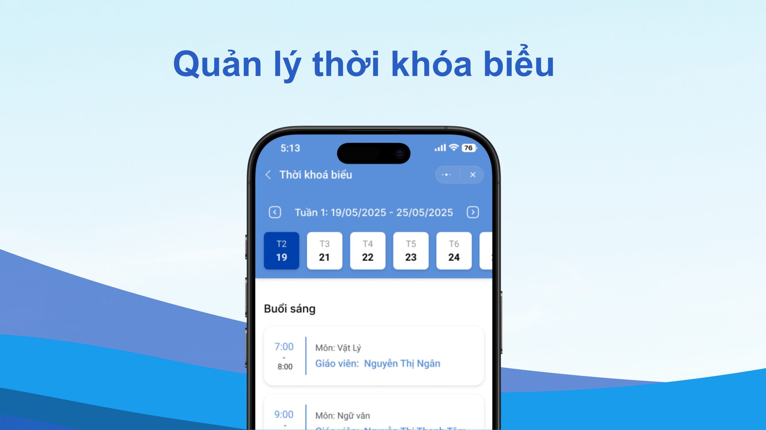 Ứng dụng cho phép phụ huynh và học sinh dễ dàng xem thời khóa biểu cũng như các lịch học quan trọng. Tất cả thông tin về môn học, giáo viên phụ trách và thời gian học đều được hiển thị rõ ràng trên hệ thống.