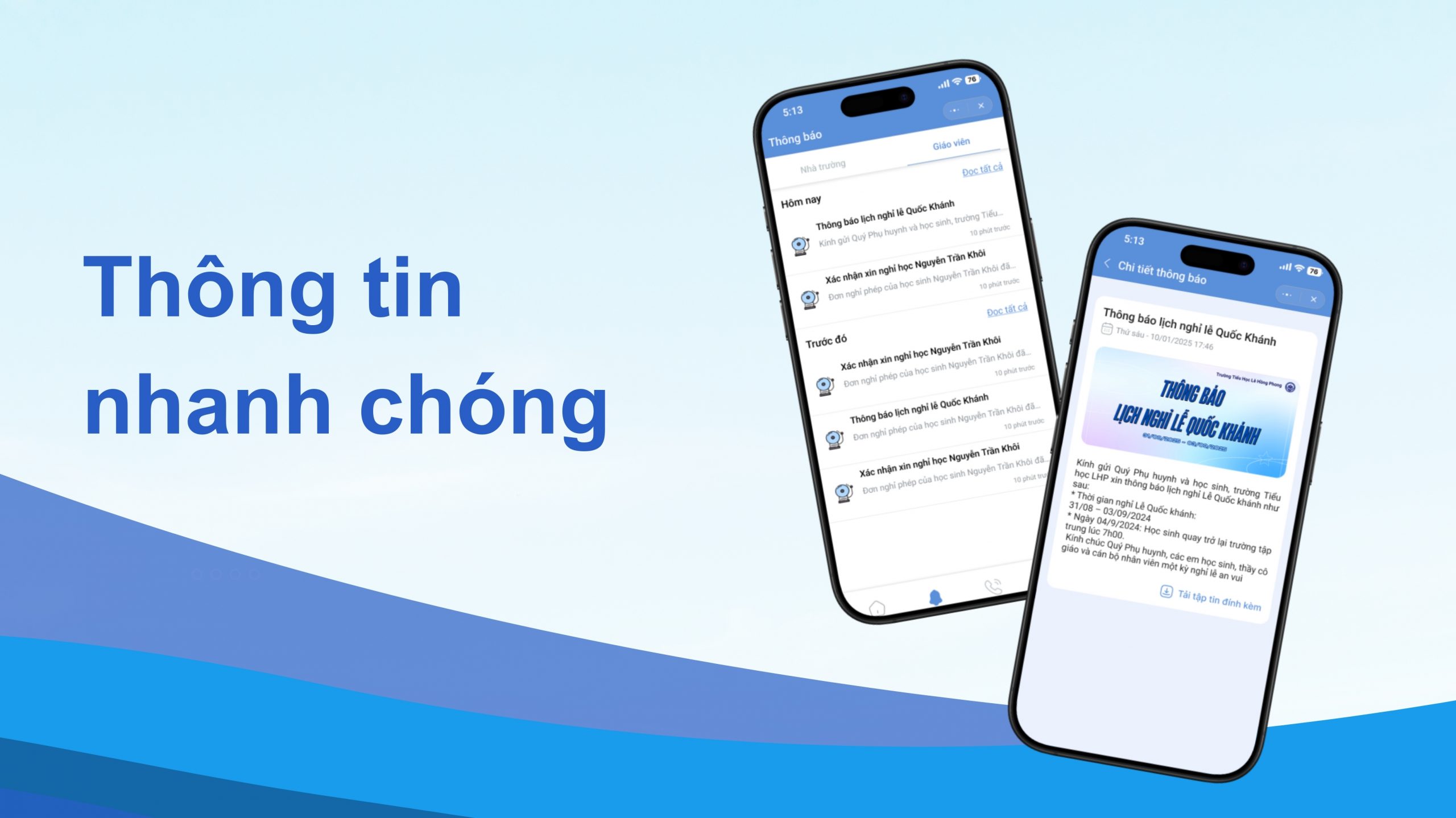 Nhận thông báo từ nhà trường và giáo viên